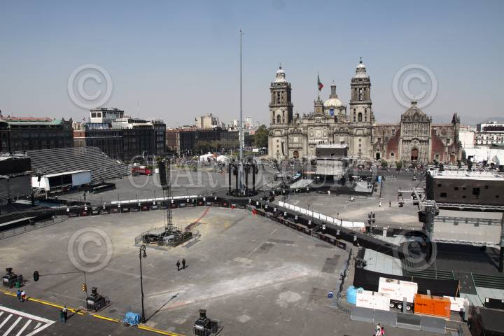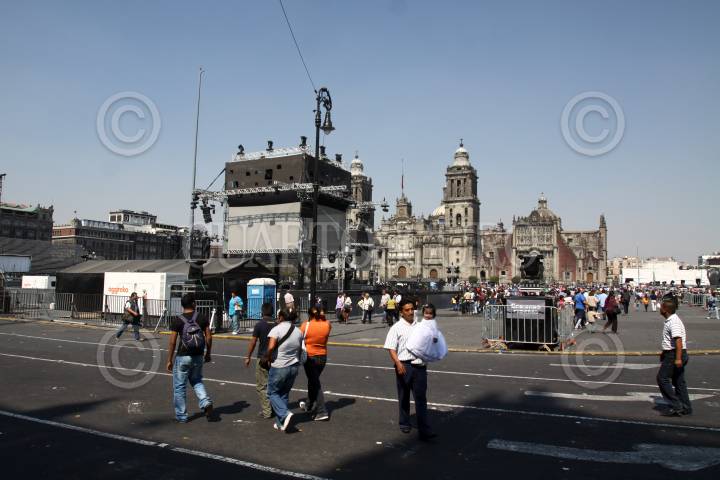 MÉXICO, D.F., 21NOVIEMBRE2010.- Aspecto del Zócalo capitalino en donde se observan las estructuras en donde hasta el día 23 de Noviembre se presentará el espectaculo Yo México en punto de las 21:00 hrs. FOTO: RODOLFO ANGULO/CUARTOSCURO.COM