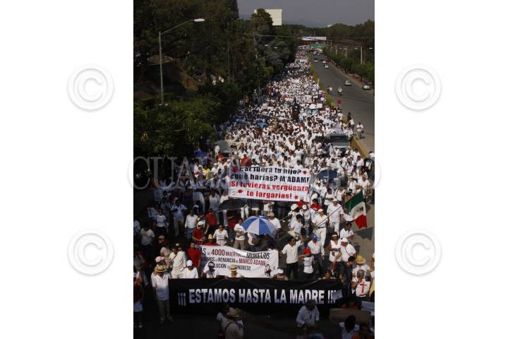 CUARNAVACA, MORELOS, 06ABRIL2011.- Más de 50 mil personas marcharon del monumento conocido como La Paloma de la Paz al zócalo debido a los más de 40 mil muertos que han habido en el país desde que inició la lucha contra el crimen organizado. FOTO: IVAN STEPHENS/CUARTOSCURO.COM