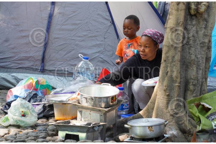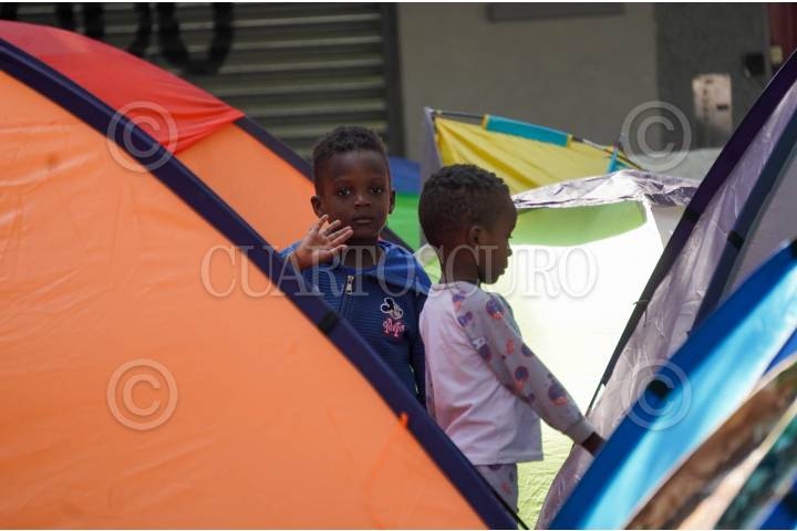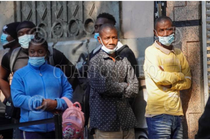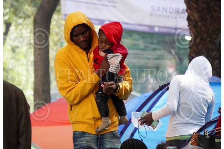 Migrantes de origen haitiano se forman desde muy temprano en las oficinas de la Comisión Mexicana de Ayuda a Refugiados (Comar) para buscar un documento que les valide su estancia legal en el pais y así puedan seguir con un poco más de tranquilidad hacia Estados Unidos, que para muchos es su objetivo. Ante la falta de recursos para conseguir alojamiento se han instalado en campamento en la Plaza Giordano, en la colonia Juárez.