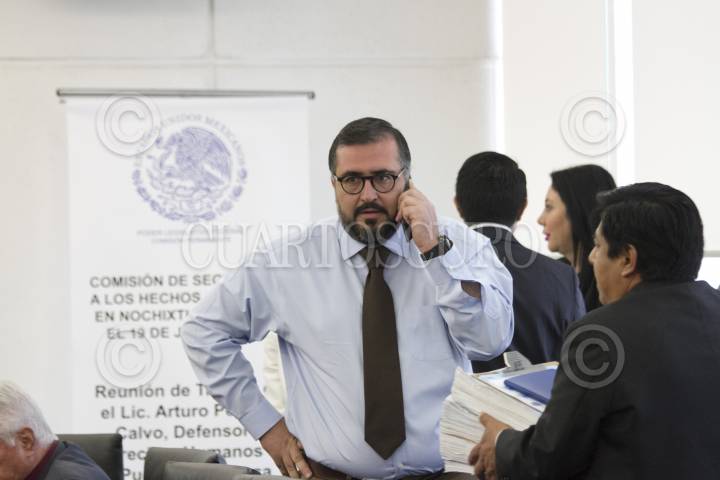 CIUDAD DE MÉXICO, 26JULIO2016.- Arturo Peimbert Calvo, defensor de derechos humanos del pueblo de Oaxaca, se reunió con los integrantes de la comisión que investiga los hechos violentos de Nochixtlán, el 19 de junio, en el Senado de la República. En la imagen lo acompañan la diputada Mariana Benítez y la senadora Mariana Gómez del Campo. FOTO: MOISÉS PABLO /CUARTOSCURO.COM