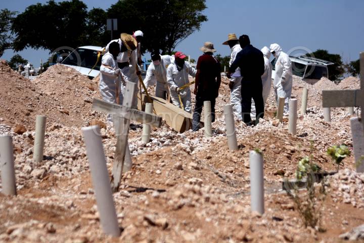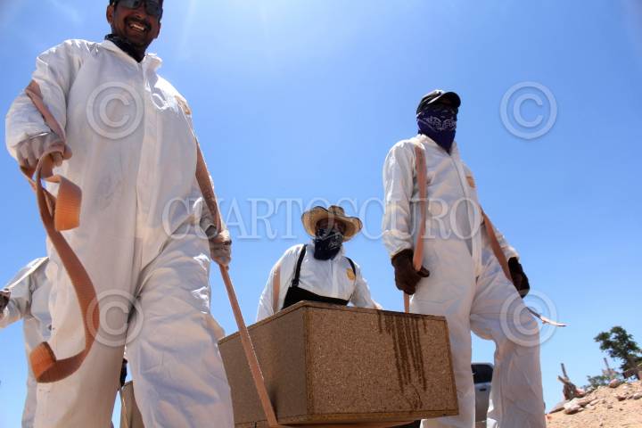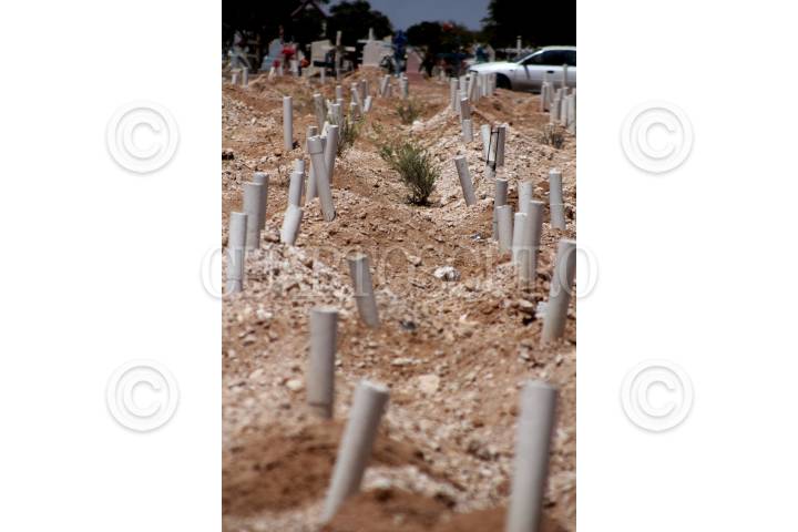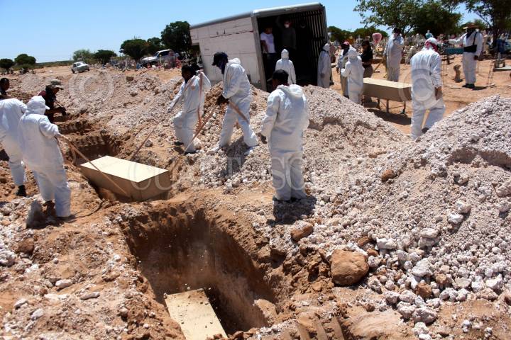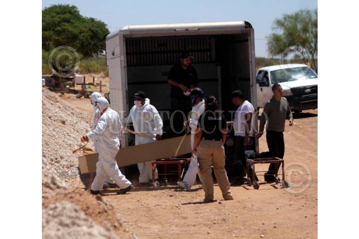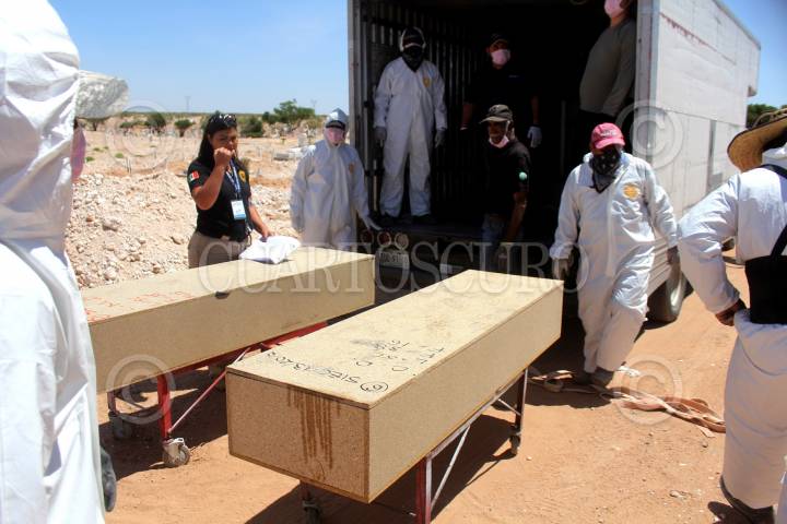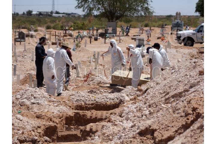 CIUDAD JUÁREZ, CHIHUAHUA, 23JULIO2018.- Un total de 40 cuerpos no identificados ni reclamados por familiares, fueron inhumados este día en el Panteón San Rafael. Previa instrucción del personal encargado del Servicio Médico Forense, seis empleados de la Dirección General de Servicios Públicos Municipales auxiliaron en los trabajos realizados en la Fosa Común informó Raúl Rodríguez Santillanes, titular de la dependencia. Dio a conocer que con anterioridad fue personal de esta dependencia el que se encargó de construir cada una de las fosas para que cada cuerpo fuera depositado en una fosa individual. Se trata de cadáveres de hombres y mujeres fallecidos en circunstancias violentas de los cuales, al no ser reconocidos por nombre, la autoridad ministerial recopiló sus datos genéticos para su eventual identificación en un futuro. FOTO: NACHO RUIZ /CUARTOSCURO.COM