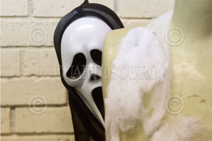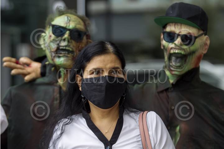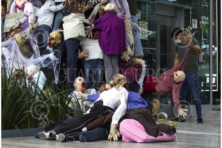 Decenas de "zombies" de trapo y de tamaño real fueron colocados en un centro comercial del sur de la ciudad como parte de la celebración de Halloween.