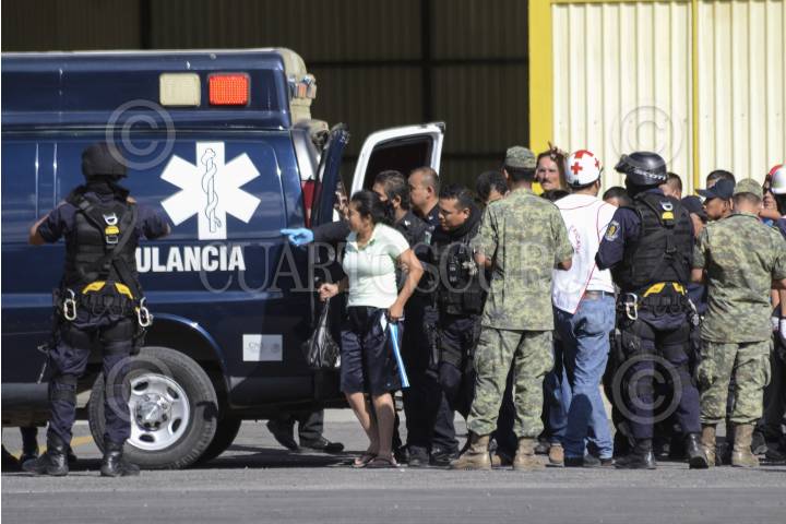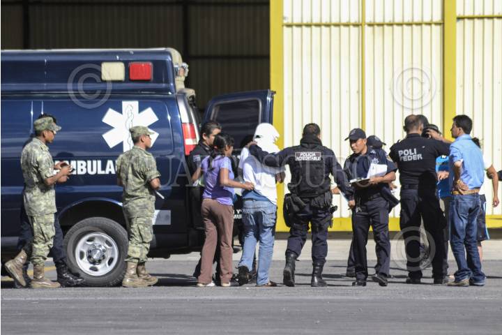CHILPANCINGO, GUERRERO,18DICIEMBRE2015.- Autoridades del estado a través de un comunicado de prensa dieron a conocer que en la población de Yestla ubicada en la sierra, se suscitó un enfrentamiento, con un saldo de dos heridos. En la imagen, los heridos que fueron trasladados en helicóptero a esta capital y llevados al hospital general Rayando Alarcón. FOTO: JOSÉ I. HERNÁNDEZ /CUARROSCURO.COM