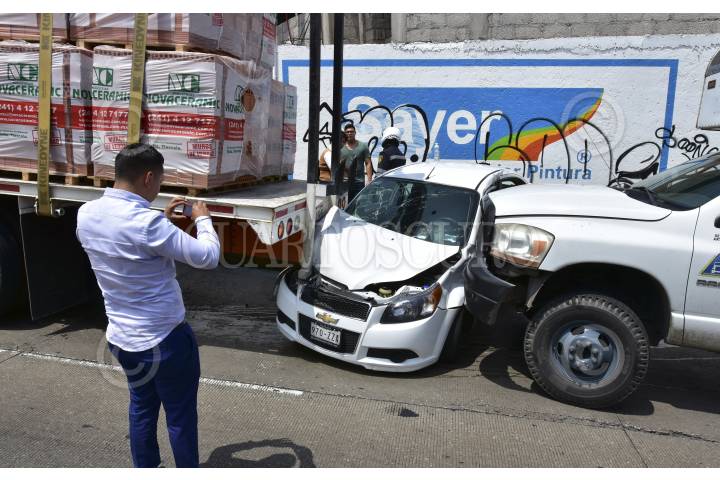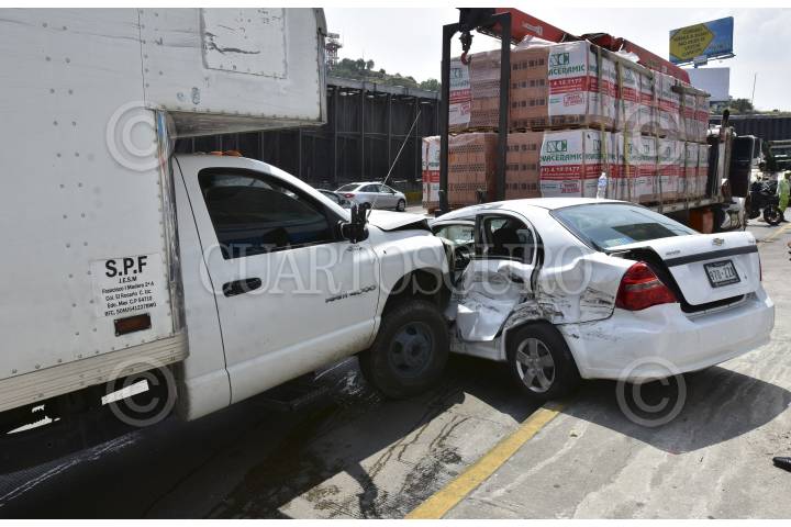 CIUDAD DE MÉXICO, 22AGOSTO2016.- Esta tarde en el Circuito Interior y metro Oceanía, se registró un choque de un camioneta de redilas y un camión torton, el cual se quedó sin frenos y se estrelló contra un auto, dejando un saldo de 2 personas heridas. FOTO: ARMANDO MONROY /CUARTOSCURO.COM
