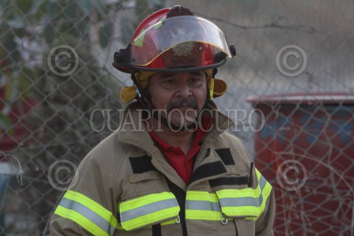 SAN VICENTE CHICOLOAPAN, ESTADO DE MÉXICO, 26MARZO2019.- Bombero habla por teléfono después de salir del lugar de la explosión registrada al oriente del Valle de México, el estallido ocurrió en al menos dos talleres de cohetes ubicados entre los municipios de Chimalhuacán y San Vicente Chicoloapan. No se reportan heridos, ni personas fallecidas. FOTO: ROGELIO MORALES /CUARTOSCURO. COM