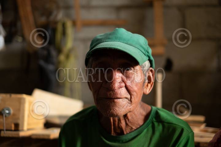Un hombre mayor posa para un retrato, el es uno de los desplazados que dejaron su casa hace tres días, después de que a partir del once de mayo los ataques incrementaran en la comunidad de Chivit.