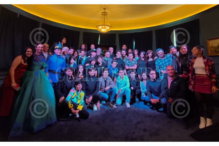 Ariel López Padilla, Nicolás Haza, Plutarco Haza, Ricardo Arnaiz, Matías Gruener, Jaime Maqueo, y Gerardo Taracena, posan para la foto al finalizar la conferencia de la película "Héroes", un ficción que habla sobre la gesta heroica de un grupo de cadetes que defendieron el Castillo de Chapultepec de la invasión estadounidense.