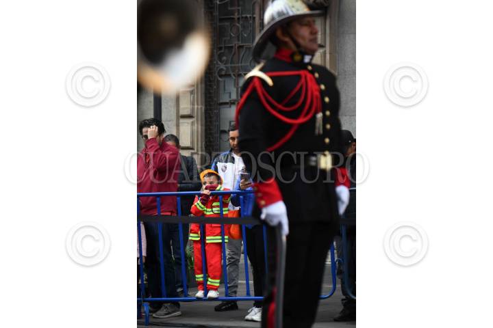 CIUDAD DE MÉXICO, 25ENERO2025.- Una niña porta un disfraz de bombero durante el desfile del Heroico Cuerpo de Bomberos de la Ciudad de México. El recorrido partió en el Zócalo de la Ciudad de México y culminó en Monumento a la Revolución. FOTO: MAGDALENA MONTIEL/CUARTOSCURO.COM