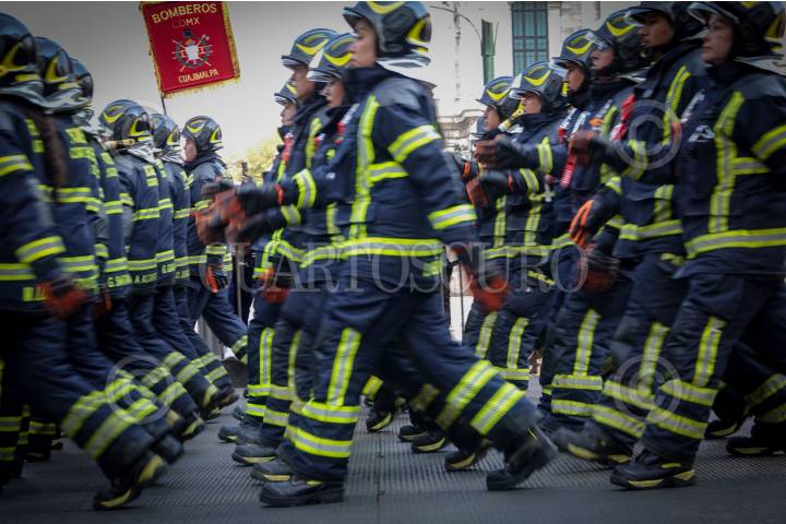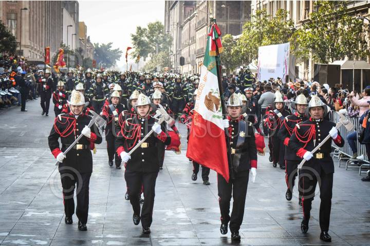 CIUDAD DE MÉXICO, 25ENERO2025.- Primer desfile del Heroico Cuerpo de Bomberos de la capital en el marco de su 169 aniversario. Los bomberos marcharon del zócalo capitalino rumbo a al monumento a la revolución. FOTO: MARIO JASSO/CUARTOSCURO.COM