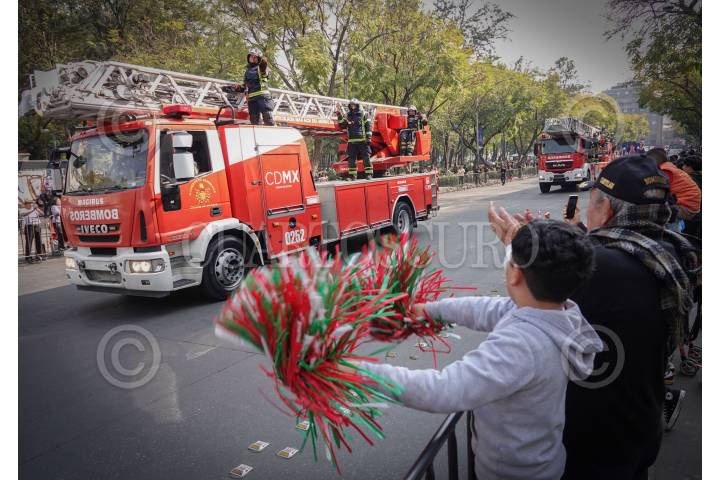 CIUDAD DE MÉXICO, 25ENERO2025.- El Heroico Cuerpo de Bomberos de la Ciudad de México, conmemoró su 169 aniversario de servicio a la ciudadanía desfilando. El recorrido partió en el Zócalo de la Ciudad de México y culminó en Monumento a la Revolución. FOTO: MAGDALENA MONTIEL/CUARTOSCURO.COM