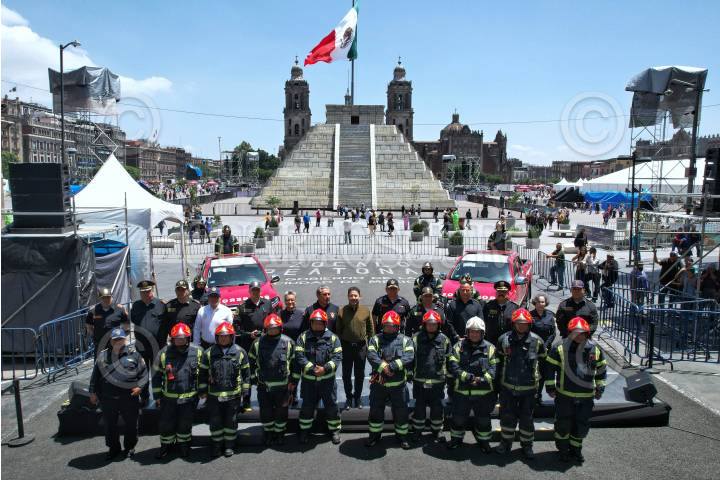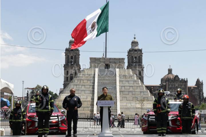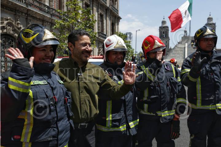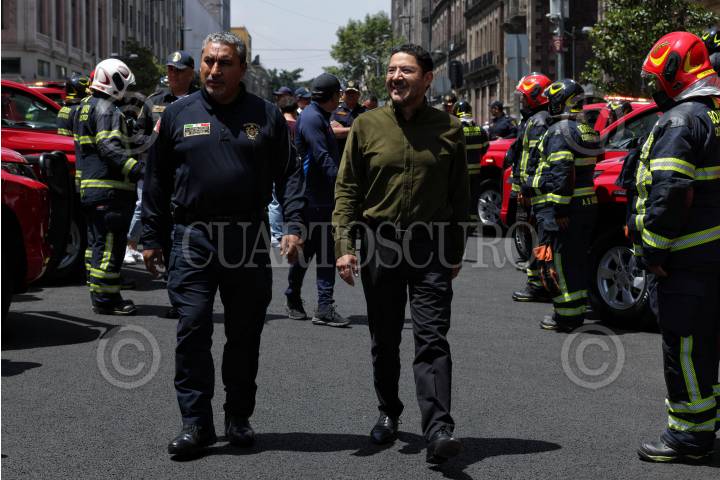 CIUDAD DE MÉXICO, 14JULIO2024.- Martí Batres, Jefe de Gobierno, y Juan Manuel Pérez Cova, director general del Heroico Cuerpo de Bomberos, encabezaron la entrega de nuevas unidades de primera respuesta al Heroico Cuerpo de Bomberos en el Zócalo. FOTO: GOBIERNO DE LA CIUDAD DE MÉXICO/CUARTOSCURO.COM