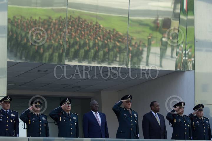 CIUDAD DE MÉXICO, 10ABRIL2018.- Salvador Cienfuegos Zepeda, secretario de la Defensa Nacional, encabezó la ceremonia de recepción de Hervé Davis, ministro de Justicia de la República de Haití, así como del embajador Guy Lamothe, en la Plaza de la Lealtad. FOTO: GALO CAÑAS /CUARTOSCURO.COM