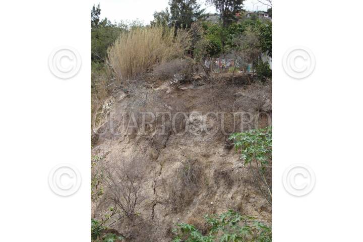 CHILPANCINGO, GUERRERO.- Aspecto de la grieta que apareciera hace mas de veinte dias sobre la barranca del "Coro" en la colonia Bella Vista donde se encuentran edificadas mas de 10 viviendas que corren el riesgo de hundirse y derrumbarse ante los contastante deslaves en dicha zona y la cual se hiciera mas grande debido a los sismos registrados la madrugada de este viernes en la entidad. FOTO OSCAR ALVARADO/CUARTOSCURO.COM