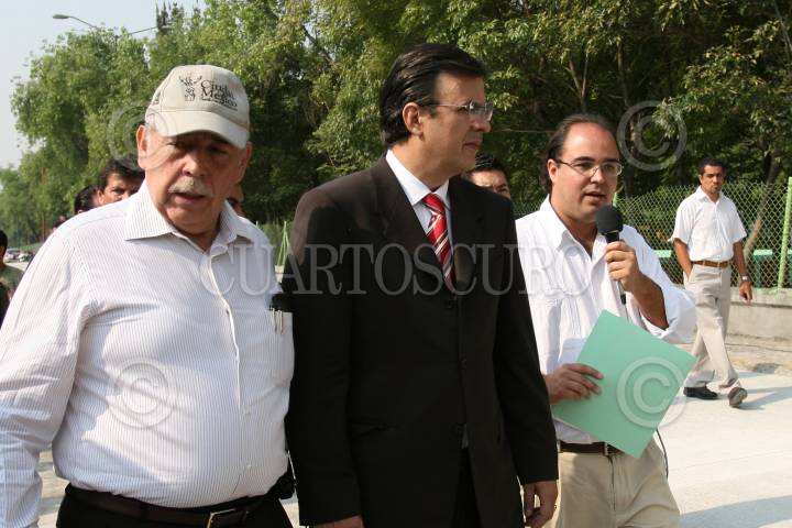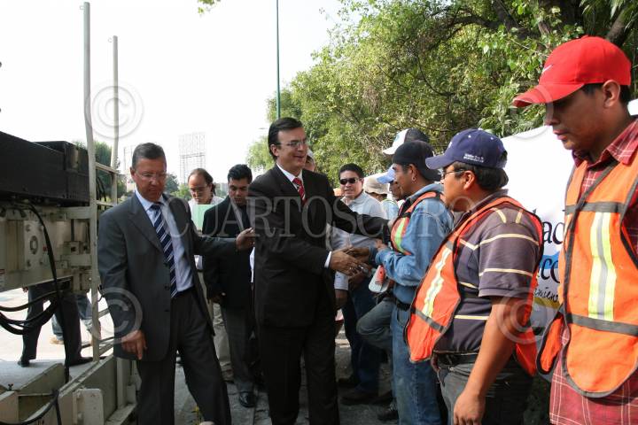 MÉXICO, D.F., 07MAYO2008.-Marcelo Ebrad Casaubon, jefe del gobierno capitalino, acudio al inicio de la colocación del tendido de Concreto Hidráulico en el Circuito Interior. FOTO: GUILLERMO PEREA/CUARTOSCURO.COM