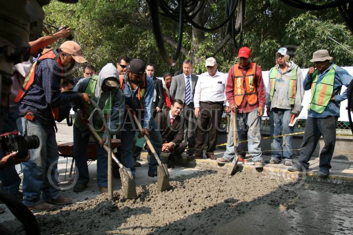 Cuauhtémoc Blanco durante la inauguracion de una calle pavimentada en una colonia del oriente de la capital.