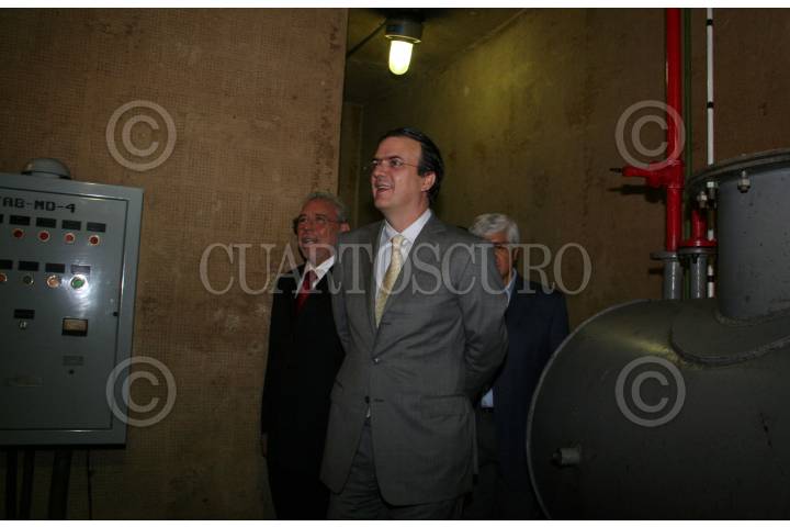 MÉXICO, D.F. 14JUNIO2007.- El jefe de gobierno capitalino, Marcelo Ebrard Casaubón, acudió al sistema hidráulico ubicado en la avenida Miramontes para presentar una estrategia de cuidado debdo a la època de lluvias. En la imagen, con Ramón Aguilar, director del Sistema de Aguas del Distrito Federal. FOTO: PAOLA HIDALGO/CUARTOSCURO.COM