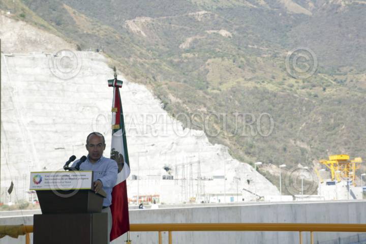 MUNICIPIO DE LA YESCA, NAYARIT, 06NOVIEMBRE2012.- Felipe Calderón Hinjosa, Presidente de México, encabezó la inauguración de la Central Hidroeléctrica "La Yesca", además recorrió sus instalaciones. FOTO: ALFREDO GUERRERO /CUARTOSCURO.COM