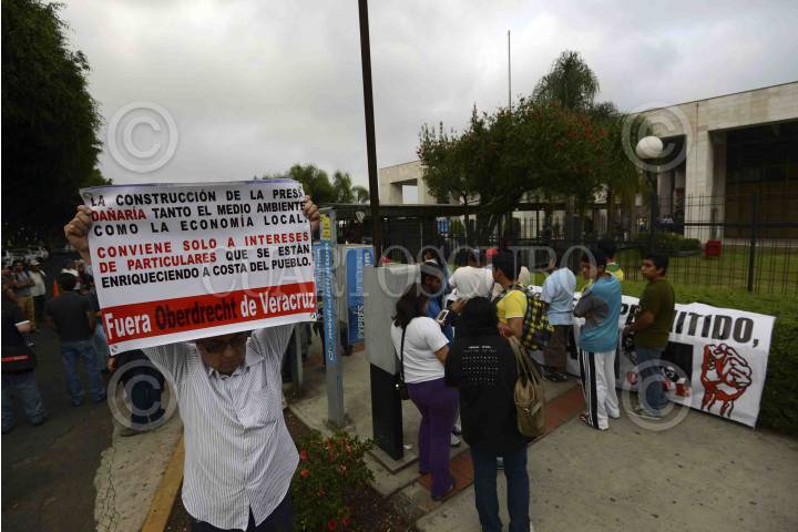 XALAPA, VERACRUZ, 25FEBRERO14.- Habitantes de Jalcomulco se manifestaron fuera y dentro del Congreso del Estado al ser clausurada una mesa de dialogo con la comisión legislativa de medio ambiente, donde expondrían sus argumentos por los cuales no se debe construir la hidroeléctrica. FOTO: RUBÉN ESPINOSA /CUARTOSCURO.COM
