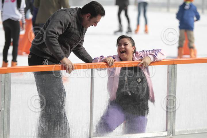 MÉXICO, D.F., 31DICIEMBRE2014.- Capitalinos acudieron al Zócalo donde se instalaron tres pistas de hielo; dos circulares, con diámetro de 25 metros, una para niños de 3 a 5 años de edad y otra para adultos mayores y personas con discapacidad, además de la pista central de 72 metros de largo por 35 de ancho, es decir, dos mil 196 metros cuadrados. FOTO: IVÁN STEPHENS /CUARTOSCURO.COM