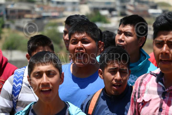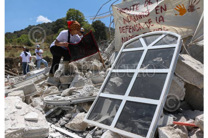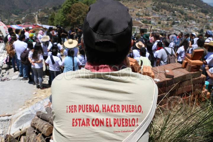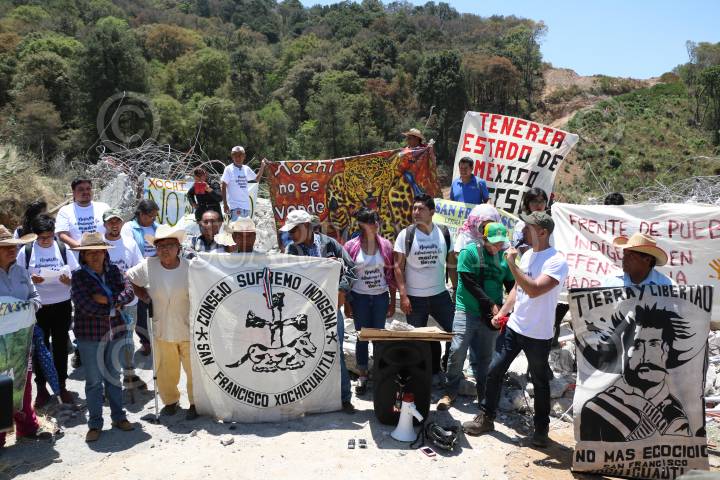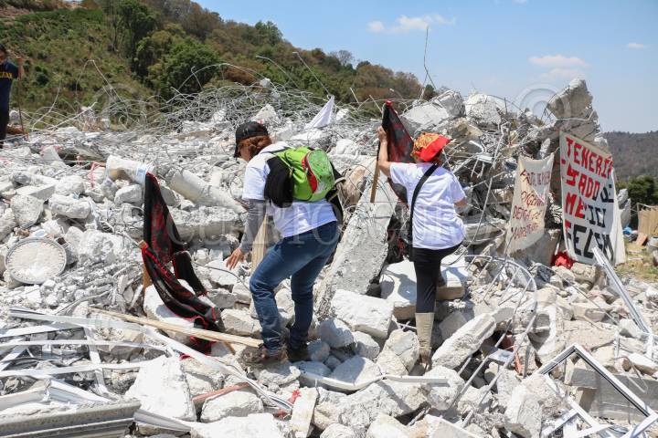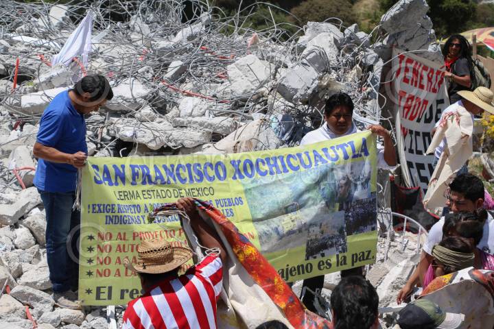 XOCHICUAUTLA, ESTADO DE MÉXICO, 13ABRIL2016.- Habitantes de Xochicuautla acompañados de normalistas de la escuela normal rural de Tenancingo y más de 20 organizaciones adherentes al movimiento “Frente de Pueblos Indígenas en Defensa de la Madre Tierra” realizaron un mitin en el lugar donde fue derribada la casa del líder indígena otomí, para dar a conocer una campaña nacional a favor de los recursos naturales de Xochicuautla tras la construcción de la nueva autopista Naucalpan-Toluca construida por el grupo HIGA. FOTO: SAÚL LÓPEZ /CUARTOSCURO.COM