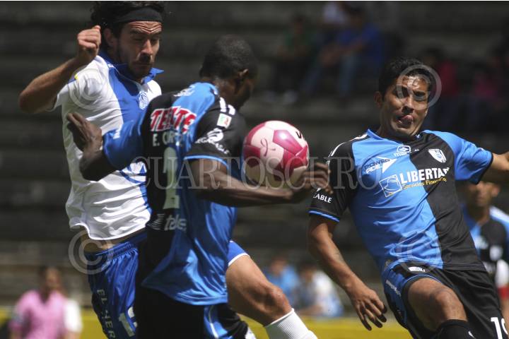 PUEBLA, PUEBLA, 16OCTUBRE2011.- El Puebla de la Franja derrotó a los visitantes del estadio Cuauhtémoc, los Gallos Blancos del Querétaro, durante el juego de la fecha 13 del torneo apertura 2011 donde el marcador final fue de 1 gol a 0. FOTO: FRANCISCO GUASCO/CUARTOSCURO.COM