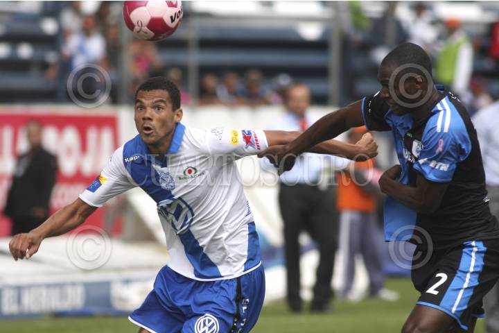 PUEBLA, PUEBLA, 16OCTUBRE2011.- Duvier Riascos, delantero del equipo camotero, festela la anotación del triunfo ante los Gallos Blancos del Querétaro, durante el juego de la fecha 13 del torneo apertura 2011 donde el marcador final fue de 1 gol a 0. FOTO: FRANCISCO GUASCO/CUARTOSCURO.COM