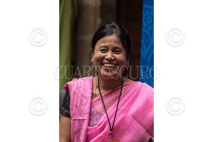 GUANAJUATO, GUANAJUATO, 15OCTUBRE2018.- Rina Devi, hindú bailarina, coreógrafa y directora de Manipuri Jagoi Maru, compañía de danza clásica india, en conferencia de prensa para ofrecer detalles sobre su participación de esta noche en la explanada de la Alhóndiga de Granaditas, dentro de las actividades de danza del Festival Internacional Cervantino XLVI. FOTO: MARIO JASSO /CUARTOSCURO.COM