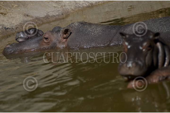 MORELIA, MICHOACAN, 03DICIEMBRE2013.- La madrugada del lunes, nació un Hipopótamo del Nilo, con un peso aproximado de 30 kilos que viene a incorporarse a un grupo de 4 ejemplares más de esta especie, entre los que se encuentran un macho adulto, 2 hembras adultas y una cría más. Los Hipopótamos del Nilo se encuentran en peligro de extinción a causa de la pérdida de su hábitat natural, por la caza furtiva para conseguir su carne, además del marfil de algunas de sus piezas dentales. FOTO: ALAN ORTEGA /CUARTOSCURO.COM
