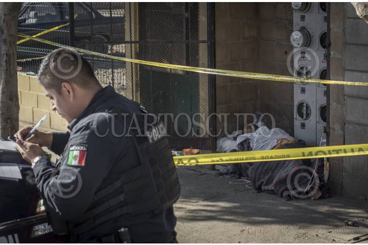TIJUANA, BAJA CALIFORNIA, 22NOVIEMBRE2016.- Un indigente fue encontrado muerto frente a la Asociación Civil, El Desayunador del Padre Chava, a consecuencia de las bajas temperaturas que han comenzado a ser registradas en la ciudad. Según agentes del Ministerio Público que llegaron al lugar para atender el caso, mencionaron que la persona murió de hipotermia durante la noche anterior. De acuerdo a voluntarios del Desayunador, el indigente al cual llamaban “El Flaco”, fue deportado de Estados Unidos hace cuatro años, también informaron que acudía todas las mañanas al lugar para recibir el desayuno. FOTO: CHRISTIAN SERNA /CUARTOSCURO.COM