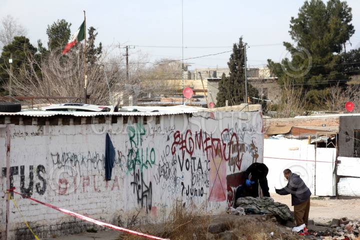 CIUDAD JUÁREZ, CHIHUAHUA, 17ENERO2018.- Vecinos del sector reportaron a las autoridades que en los cruces de la calles Cisne y Novena de la colonia Granjas de Chapultepec se encontraba un hombre sin vida al parecer falleció por las bajas temperaturas que se presentaron durante la madrugada de hoy. La persona estaba sentada en un sillón y tenía sobre él, una cobija con la cual intentó taparse. Será a través de la necropsia de ley que el Servicio Médico Forense confirme si la persona falleció o no por hipotermia, lo que sería la segunda muerte. FOTO: NACHO RUÍZ /CUARTOSCURO.COM
