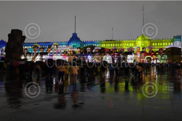 CIUDAD DE MÉXICO, 16JULIO2025.- Proyección de "Memoria Luminosa" sobre Palacio Nacional. FOTO: DANIEL AUGUSTO/ CUARTOSCURO.COM