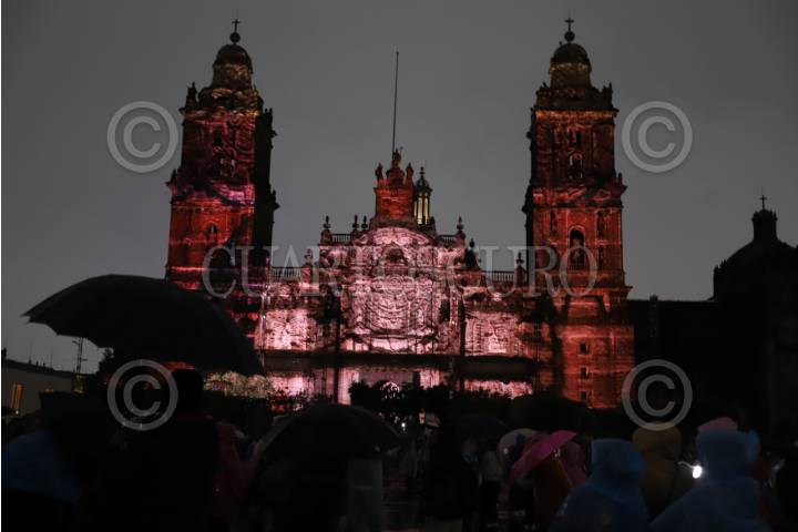 CIUDAD DE MÉXICO, 16JULIO2025.- La Arquidiócesis Primada de México solicitó al gobierno capitalino no proyectar los de "Memoria Luminosa" sobre la Catedral Metropolitana porque apesar de que existe la división entre política pública y libertad religiosa, se debe respetar la libertad de ideas. FOTO: DANIEL AUGUSTO/ CUARTOSCURO.COM