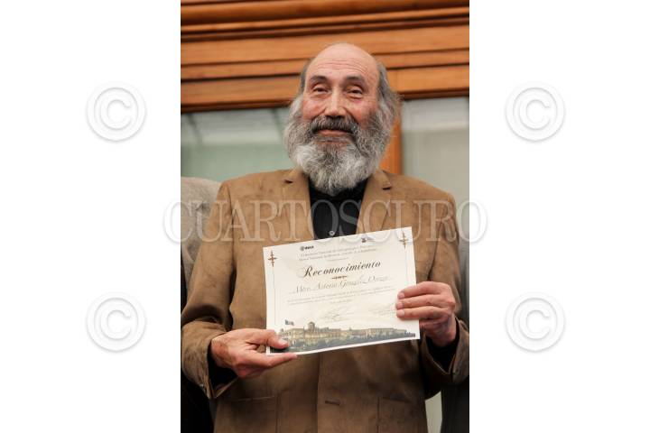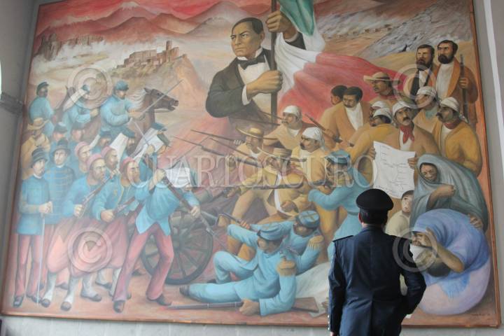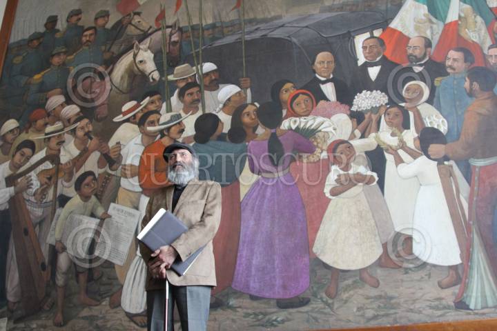 CIUDAD DE MÉXICO, 13JULIO2017.- El muralista Antonio González Orozco fue homenajeado por su obra plasma en una de las paredes del Castillo de Chapultepec que muestra el momento de la entrada triunfal de Benito Juárez a la Ciudad de México con el ejército libertador, esto con motivo del 150 aniversario del hecho histórico. FOTO: GALO CAÑAS /CUARTOSCURO.COM