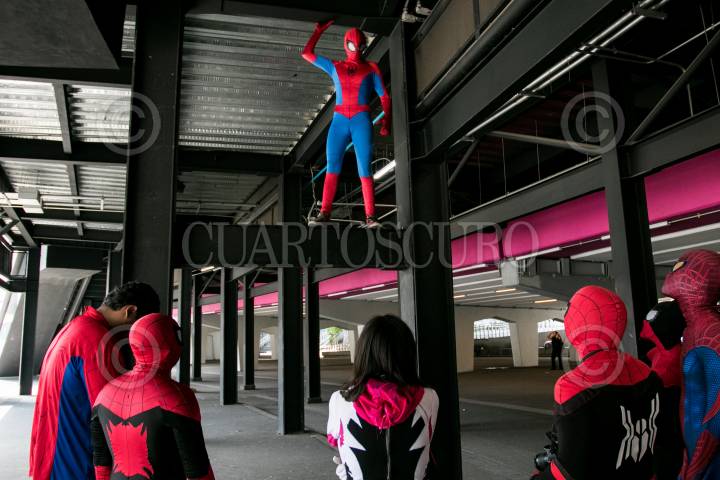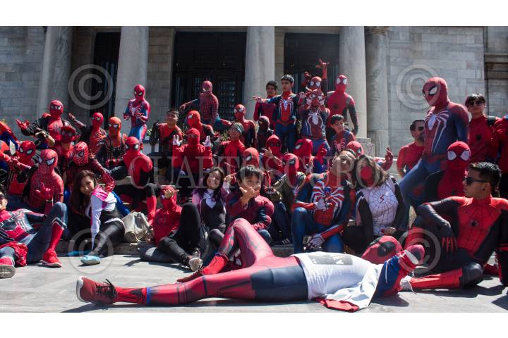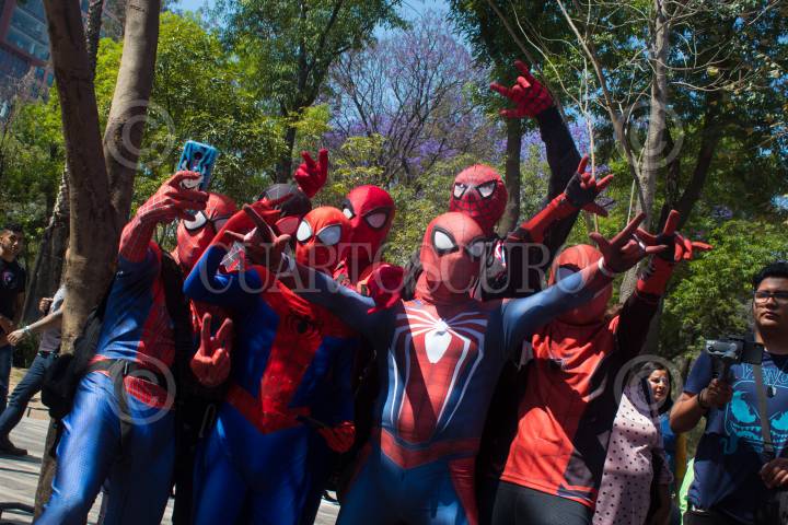 CIUDAD DE MÉXICO, 25AGOSTO2019.- Un grupo de aficionados de “Spider Man” se reunieron en la Glorieta de Insurgentes para realizar algunas fotografías con poses del personaje de Marvel. FOTO: GALO CAÑAS /CUARTOSCURO.COM