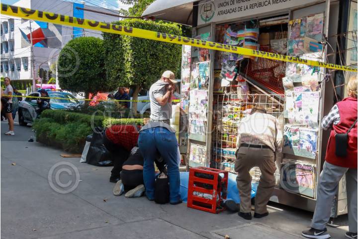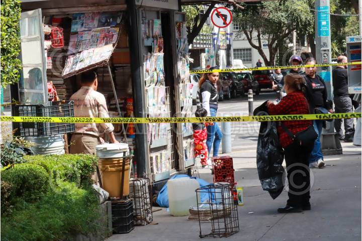 CIUDAD DE MÉXICO, 30ENERO2025.- Un vendedor de un puesto de periódicos murió de un infarto fulminante, su cuerpo quedó en el lugar a la espera de la llegada de la autoridades. Familiares y amigos llegaron al sitio y lamentaron la noticia. Los hechos sucedieron sobre avenida Yucatán, esquina con Chiapas, colonia Roma. FOTO: ROGELIO MORALES/CUARTOSCURO.COM