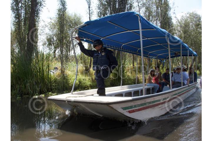 CIUDAD DE MÉXICO, 08SEPTIEMBRE2019.- Un grupo de la dirección de turismo de la alcaldía de Xochimilco, durante su recorrido de seguridad por el Canal de Xochimilco. Esto luego de que el pasado Domingo un hombre de 20 años perdiera la vida al caer al canal en estado de ebriedad. FOTO: ROGELIO MORALES /CUARTOSCURO.COM