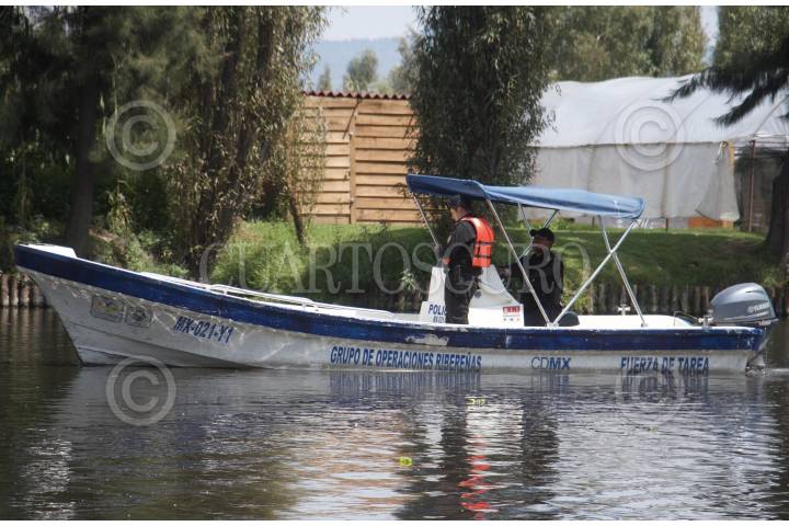 CIUDAD DE MÉXICO, 08SEPTIEMBRE2019.- Elementos del grupo de operaciones Ribereñas de la ciudad, durante su patrullaje por el Canal de Xochimilco. Esto luego de que el pasado Domingo un hombre de 20 años perdiera la vida al caer al canal en estado de ebriedad. FOTO: ROGELIO MORALES /CUARTOSCURO.COM