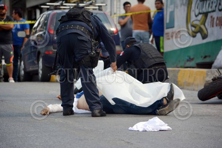 CHILPANCINGO, GUERRERO.24MAYO2017.- Dos hombres que viajaban en una motocicleta por lateral del boulevard Vicente Guerrero cerca del puente Ayutla fueron asesinados por desconocidos, el lugar fue acordonado por autoridades y los cuerpos fueron trasladado por el servicio médico Forense. FOTO: JOSÉ I. HERNÁNDEZ / CUARTOSCURO.COM