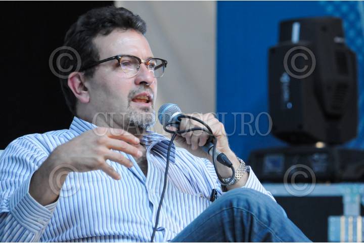 La noche de este viernes el monero del periódico La Jornada, Antonio Helguera (1965-2021) falleció víctima de un infarto de acuerdo a familiares y amigos a través de sus redes sociales. En la imagen, el caricaturista durante una plática en el marco de la XVII Feria Internacional del Libro en 2017.