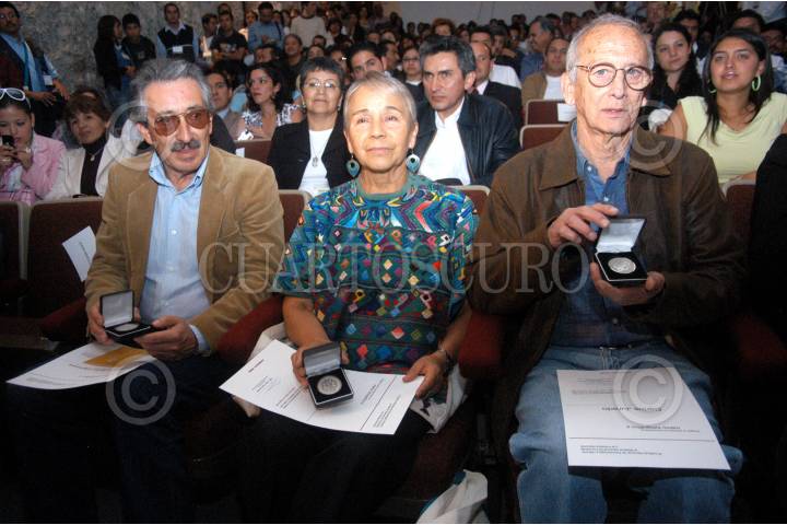 PACHUCA, HIDALGO 22AGOSTO2006.- Joan Fontcuberta, quien impartió una conferencia magistral, Citlalli Binqüis, viuda del fotógrafo Nacho López y Héctor García quienes fueron homenajeados al entregarceles una moneda de Plata por su labor como fotógrafos, durante su asistencia a la Fototeca Nacional de Pachuca dentro de las actividades del 30 aniversario de esta. FOTO: Guillermo Perea/CUARTOSCURO.COM