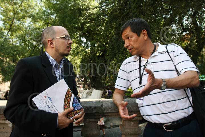 MORELIA, MICHOACOÁN, 18OCTUBRE20.- El escritor y periodista Jorge Volpi, director de Canal 22, y el crítico de cine Carlos Bonfil, presentaron en el marco del 8o Festival Internacional de Cine de Morelia, el ciclo "Las imprescindibles de Monsiváis" FOTO: ISAAC ESQUIVEL/CUARTOSCURO.COM