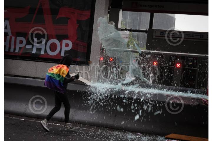 En el marco del Día Internacional contra la Homofobia, la Transfobia y la Bifobia, integrantes de la comunidad LGBT+ del Tianguis Disidente cerraron el vial de la Glorieta de Insurgentes para exigir que cese la violencia transfeminicida y otras violencias estructurales