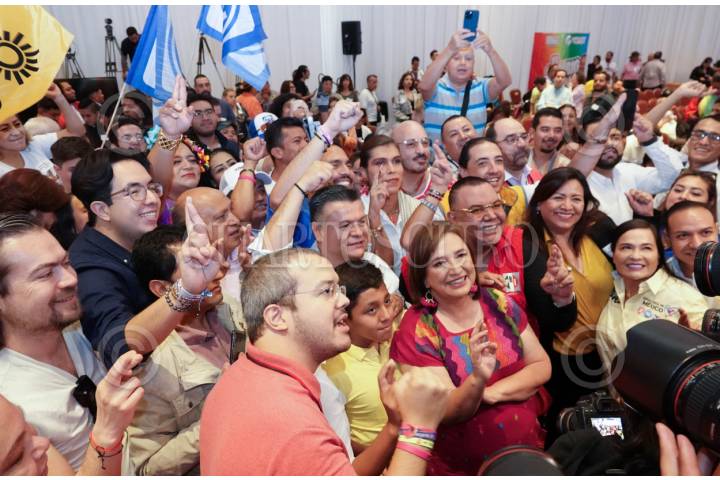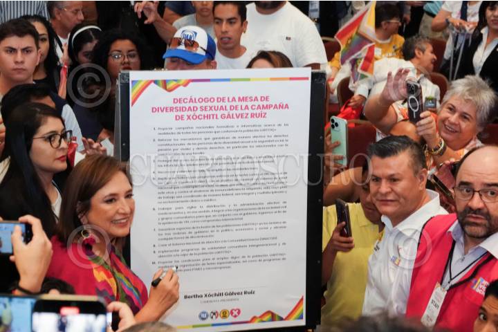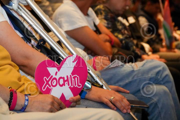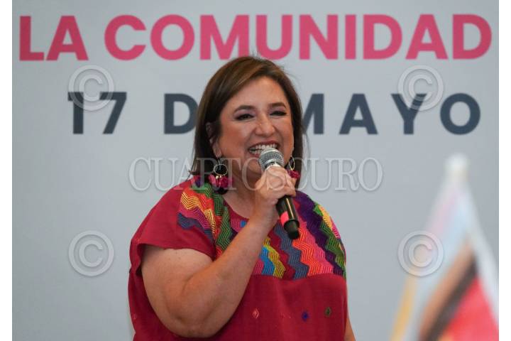 CIUDAD DE MÉXICO, 17MAYO2024.- Xóchitl Gálvez, candidata a la presidencia por la coalición Fuerza y Corazón por México (PAN-PRI-PRD), encabezó un encuentro con población LGBTTTIQPA+ en el marco del Día para erradicar la Homofobia, Lésbicofobia y Transfobia. FOTO: GALO CAÑAS/CUARTOSCURO.COM