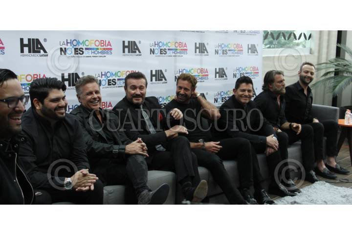 CIUDAD DE MÉXICO, 06DEMAYO219.- Daniel Ferrer, Director y los actores Gabo Villalobos, Alexis Ayala, Arturo Peniche, Gabriel Soto, Ernesto Laguardia, Juan Soler y Felipe Septién, presentaron la puesta en escena, "La homofobia no es cosa de hombres", la cual arrancará en Guadalajara el 31 de mayo, para regresar en el mes de junio a la ciudad donde se presentarán en el Teatro Hidalgo en fechas que aún está por confirmar. FOTO: ROGELIO MORALES /CUARTOSCURO.COM