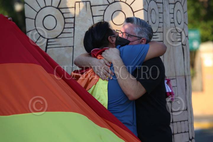 En el marco del Día contra la Homofobia, personas de la comunidad LGBT+ de Yucatán, se manifestaron en el Monumento a la Patria para exigir el reconocimiento inmediato de sus derechos