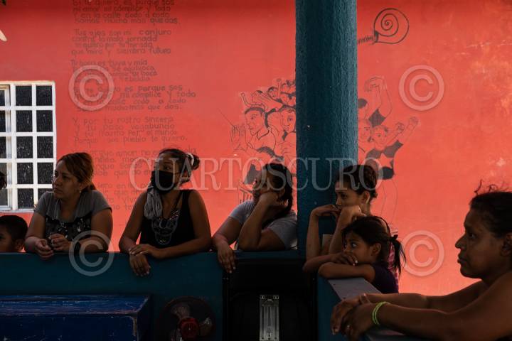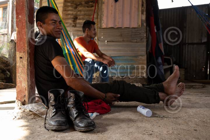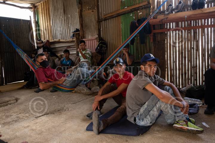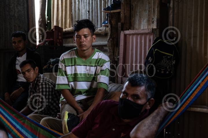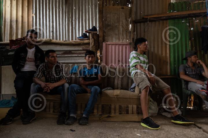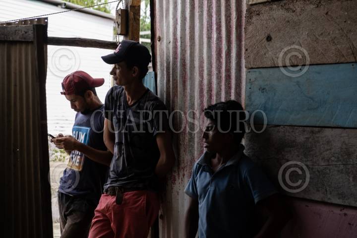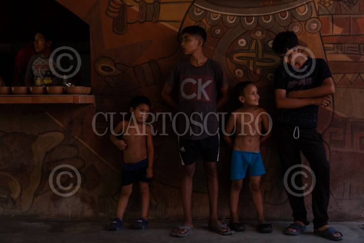 Jovenes migrantes esperan la hora de la comida dentro de la Casa del Migrante La 72.