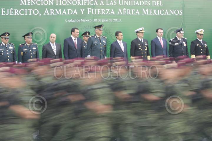 MÉXICO D.F., 30JULIO2013.- Ceremonia de entrega de menciones honoríficas a las unidades y personal del Ejército, Armada y Fuerza Aérea mexicanos en la Plaza de la Lealtad de la Secretaría de la Defensa Nacional. FOTO: IVÁN STEPHENS /CUARTOSCURO.COM