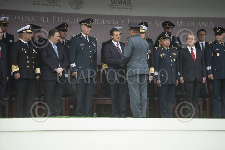 MÉXICO, D.F.,24OCTUBRE2014.- El día de hoy en las instalaciones de la Secretaria de Defensa Nacional se llevo a cabo la entrega de menciones honoríficas a las unidades del ejercito, armada y fuerza aérea mexicanas. El presidente de la República Mexicana Enrique Peña Nieto entrego dichas menciones a los diferentes miembros de las fuerzas de defensa nacional. FOTO: ISABEL MATEOS /CUARTOSCURO.COM