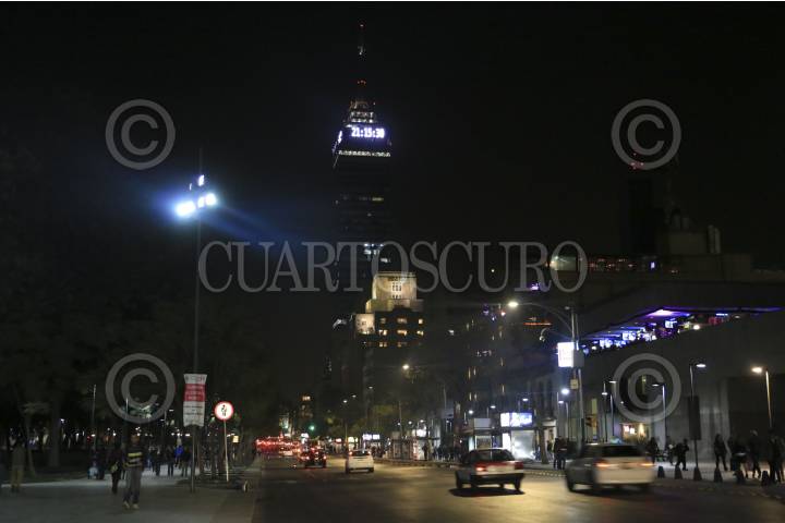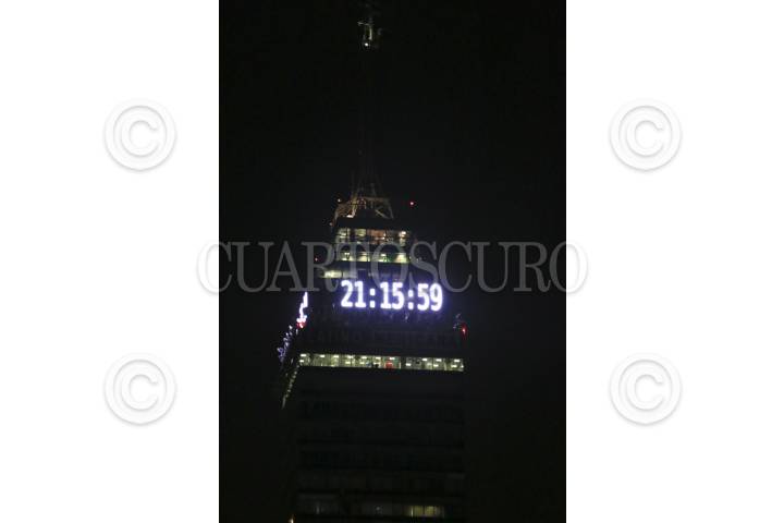 CIUDAD DE MÉXICO, 25ENERO2017.- Esta noche ponen de nueva cuenta en funcionamiento el reloj digital de la torre latinoamericana. FOTO: SAÚL LÓPEZ /CUARTOSCURO.COM