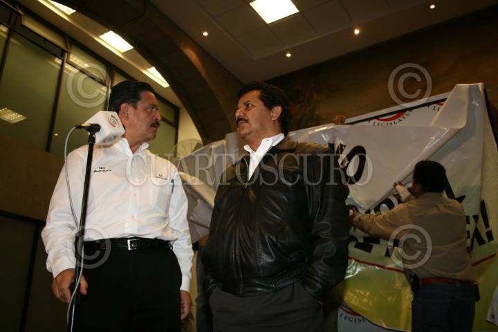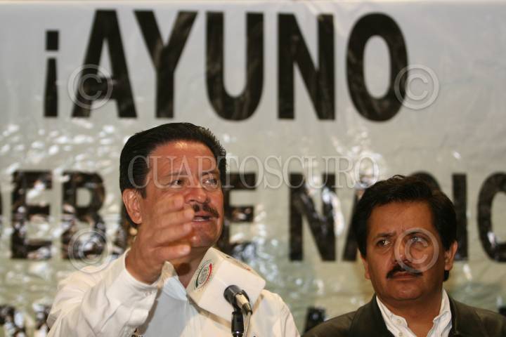 MEXICO, D.F., 13ABRIL2008.- Carlos Navarrete senador por el sol azteca aompañado por el diputado Luis Sánchez Vicepresidente de la Mesa directiva de la Camara de Diputados, durante la cobferecnia de prensa en el senado de la republica donde anunciaron esta noche que mantendran un ayuno el cual fué puesto en marcha apartir de las 20:00 horas. FOTO: SÁSHENKA GUTIÉRREZ/CUARTOSCURO.COM